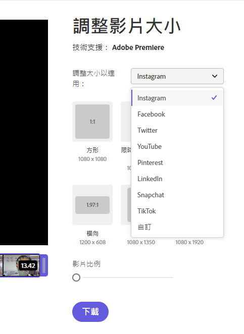 3) 按所需影片平台選擇,不然可選自訂,完成後按下載下載影片
