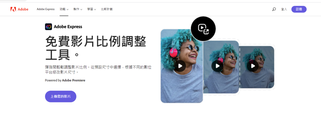 前往Adobe Express 網站,https://www.adobe.com/tw/express/feature/video/resize