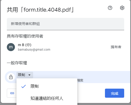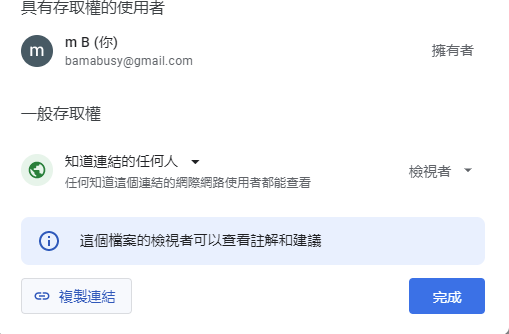 4) 更改一般存取權,簡選”知道連結的任何人”