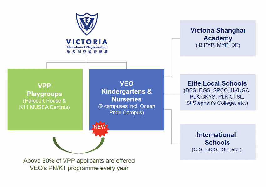 VEO從沒有明確表示入讀姊妹Playgroup Victoria Playpark可以獲得bypass第一輪面試拍片篩選,但根據學校在迎新家長講座分享的內容表示,每年有多達80%的VPP申請人獲得PN或K1的Offer,亦即鼓勵大家從小鼓讀VPP Playgroup!