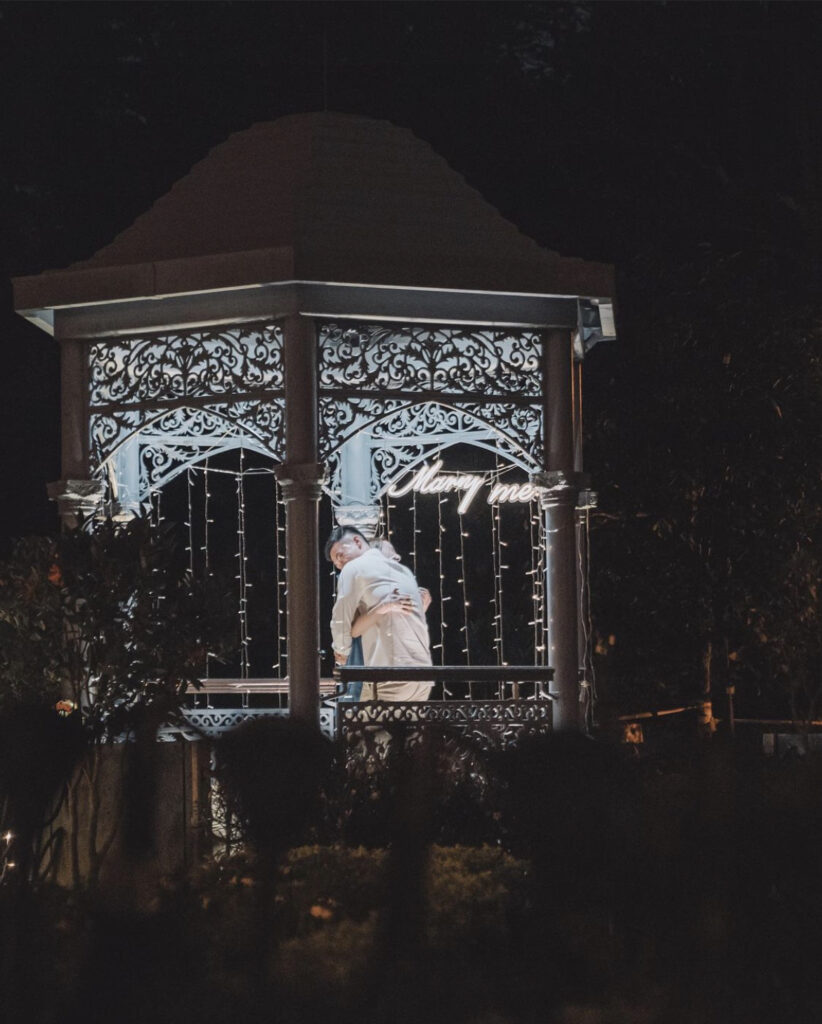 已故賭王何鴻燊三房千金何超雲日前獲消防隊長男友Douglas Wong驚喜求婚,據流出的照片可見,Douglas悉心在山頂公園佈置求婚場景,掛上燈泡及”Marry Me”燈飾,氣氛極為浪漫,兩人不但深情擁抱,Douglas更捧上準備大紮紅玫瑰與一卡鑽戒求婚。