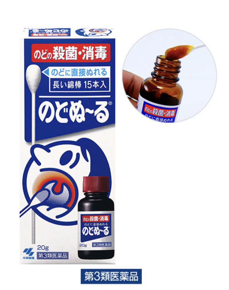 另一個替代品就是小林製藥另一款喉嚨殺菌消炎液,隨樽配上棉花棒,方便患者直接將殺菌液塗在患處、傷口上。連稅的官方售價是657円,折合港幣約40元。