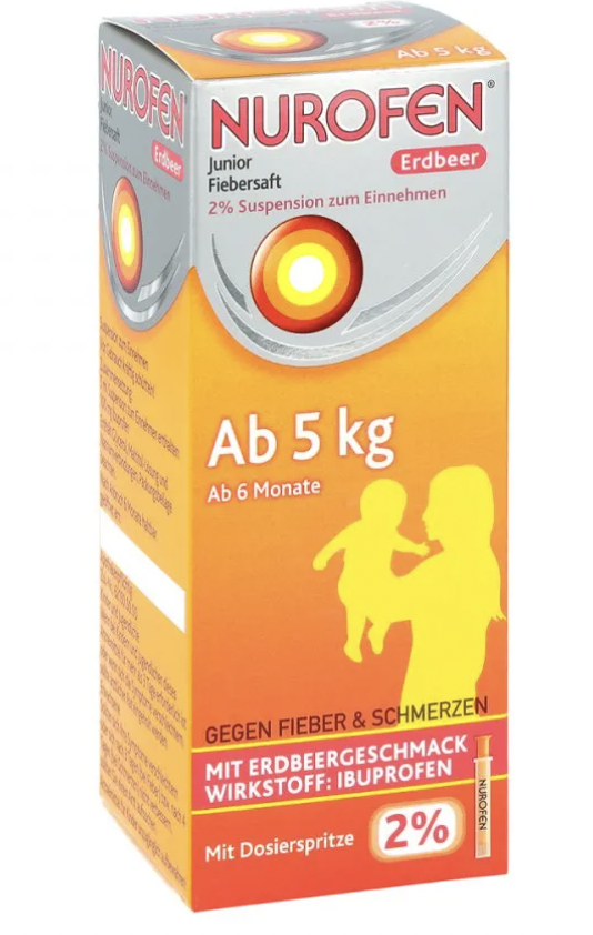 ![]() | 2. ibuprofen 高燒水 (俗稱高燒水) 只適用於6個月以上的幼童,不適合用於有嚴重嘔吐或出現脫水現象的小朋友上 在體溫高於39℃或需要時服用,兒童持續2至3日發燒高於39℃是一大警號,應盡早求醫處理。 |